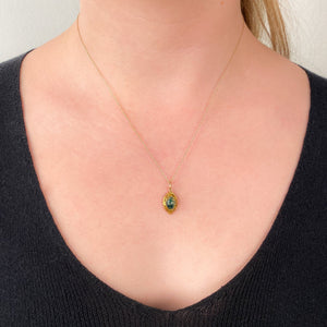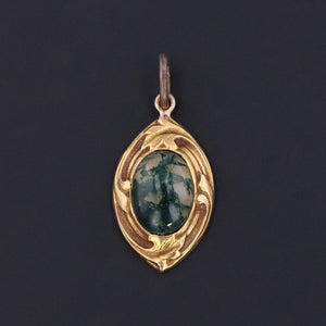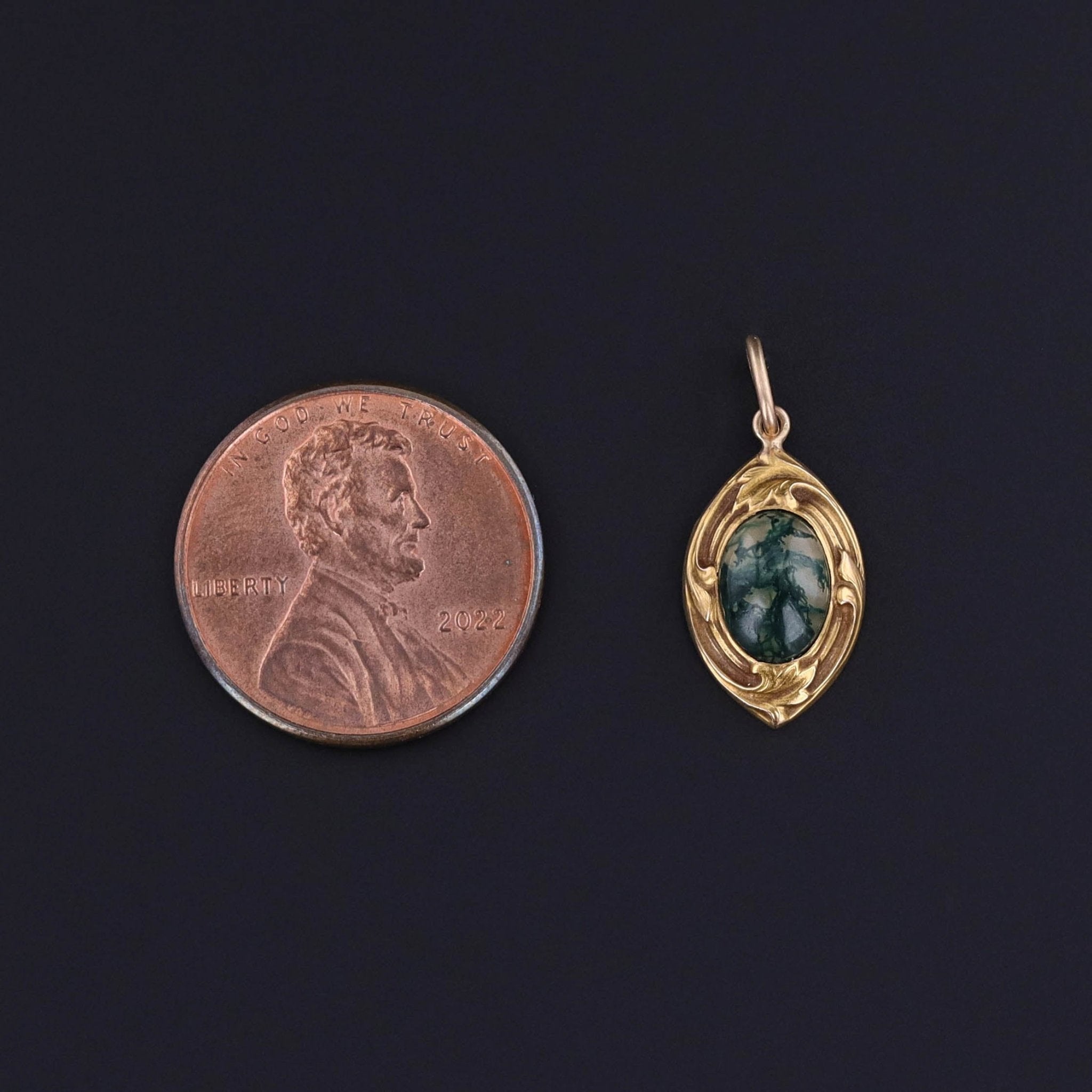 This elegant charm showcases a dendritic agate with striking green veining, framed in 14k gold. The stone’s bold, organic patterns evoke miniature landscapes, a quality long prized by collectors for their natural artistry and rarity.