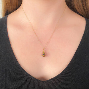 Delicate and colorful, this antique charm (circa 1880–1900) was originally a 14k gold hat pin, later transformed into a pendant with the addition of a 14k gold jump ring bail.