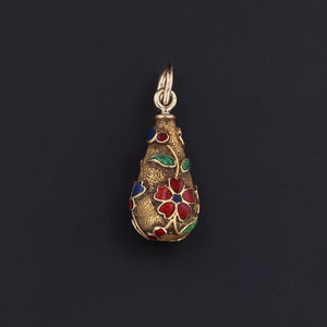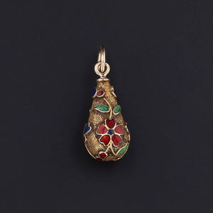 The pendant measures approximately 0.8 inches from the top of the bail to the base by 0.3 inches at its widest. It remains in excellent condition, with the enamel retaining its lively color and detail.
