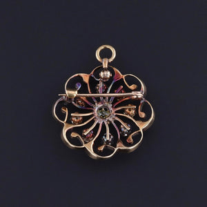 A sparkling jewel of the late Victorian era, this antique pendant-brooch (circa 1880–1900) features eight glittering old mine cut diamonds set in a finely crafted 14k gold frame. Designed with a movable bail, the piece offers versatility, allowing it to be worn as either a pendant or a brooch.