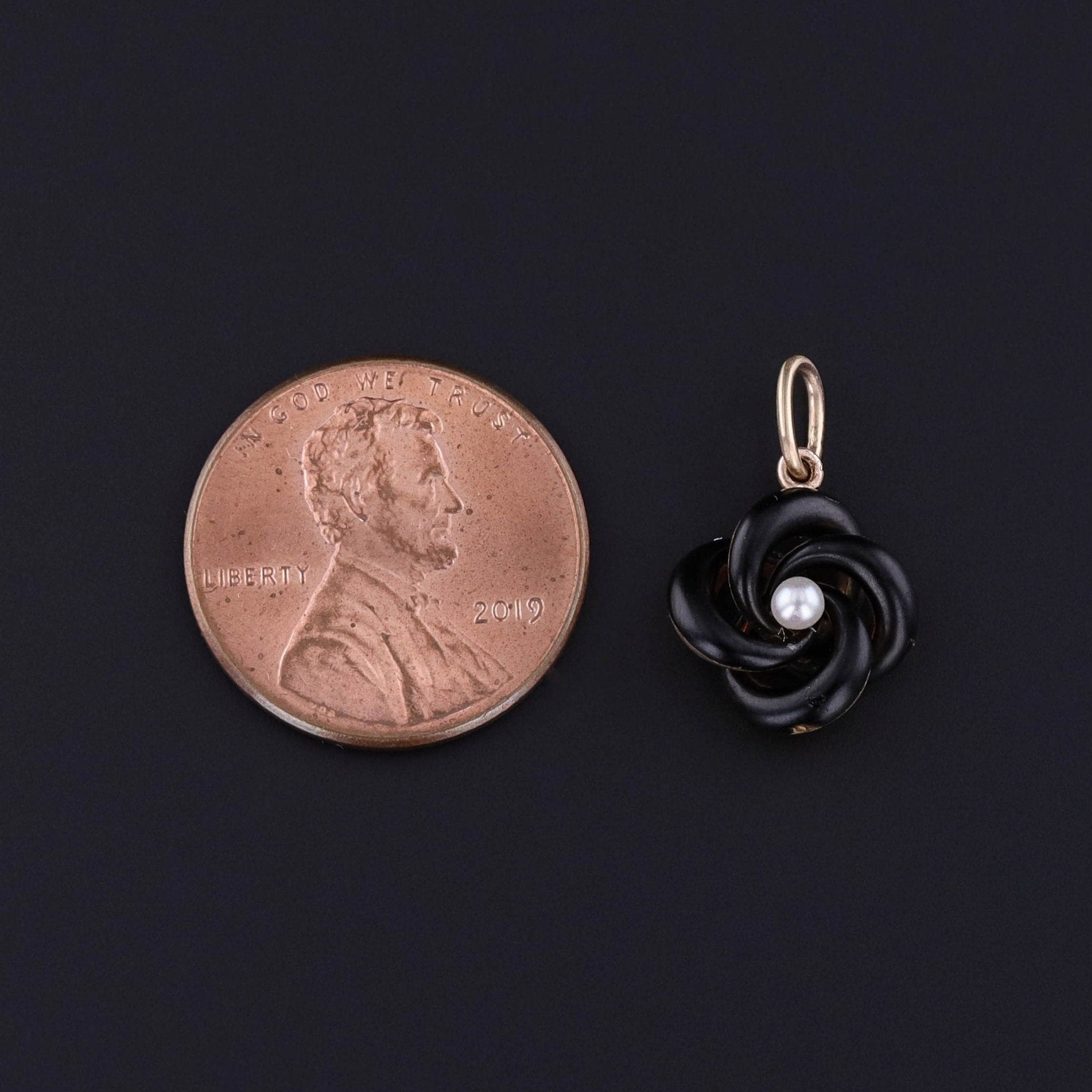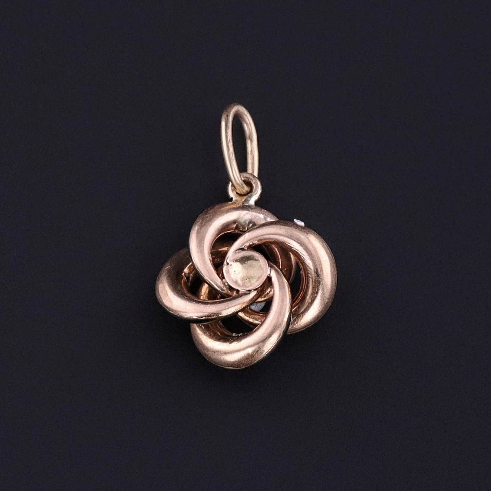 A timeless symbol of devotion, this antique love knot charm (circa 1900) was thoughtfully converted from a stickpin by removing the pin stem and adding a 14k gold jump ring bail for modern wear.
