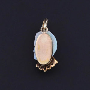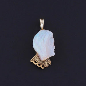 Add a touch of old-world pizzazz to any ensemble with this antique charm, showcasing a finely carved opal face set in 14k gold. The opal’s iridescent play-of-color enhances the expressive carving, giving the piece both character and intrigue. Originally crafted as a stickpin (circa 1890), it has been thoughtfully transformed by our jeweler through the removal of the pin and the addition of a 14k gold bail, preserving its history while adapting it for modern wear.