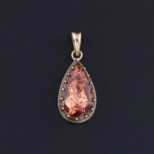 Radiating the warm, sunset hues of imperial topaz, this Georgian era pendant (circa 1800) features a foil-backed paste gem that shimmers with rich, golden-rose tones. Originally fashioned as a pin, the piece has been expertly converted into a pendant, preserving its historic charm while offering modern wearability.