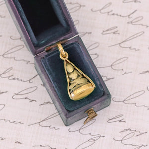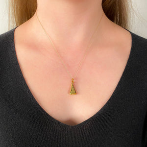 The piece measures 1 inch from the top of the jump ring to the base by 0.45 inches wide. The gold content has been confirmed through XRF (x-ray fluorescence) analysis and traditional jeweler’s acid testing, ensuring purity and authenticity.