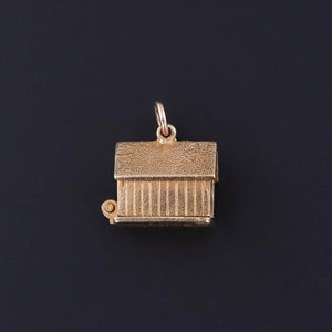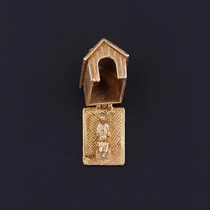 Playful yet luxurious, this vintage charm (circa 1950–1960) captures mid-century whimsy in exquisite detail. Crafted in 9ct gold, the piece takes the form of a finely rendered doghouse that opens to reveal a hidden gold terrier inside—a delightful surprise that speaks to the era’s love of mechanical and storytelling jewels.