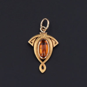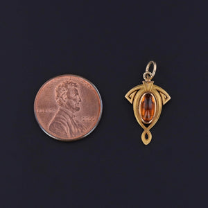 This elegant charm (circa 1910–1920) was originally crafted as an antique stickpin and has been artfully transformed with the addition of a jump ring bail. At its center rests a warm citrine cabochon, its golden glow beautifully complemented by the 14k gold mounting.