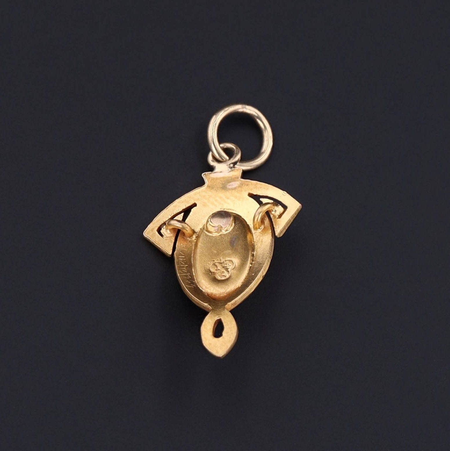 Measuring 1 inch from the top of the bail to the base by 0.5 inches across, the charm is perfectly proportioned to wear alone or layered among other antique treasures. The gold has been authenticated through XRF (x-ray fluorescence) analysis and traditional jeweler’s acid testing, confirming both purity and integrity.