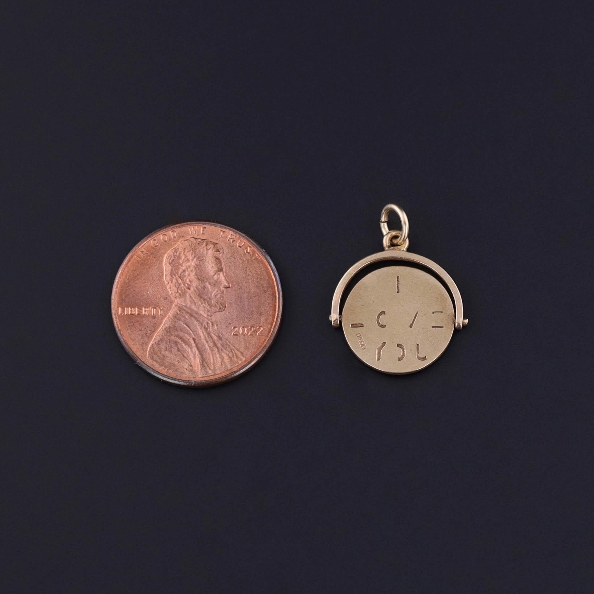 This sentimental mid-century spinner charm (circa 1960) conveys its message in the most timeless of ways—turn the disc, and the words “I Love You” reveal themselves. Crafted in warm 9ct gold, its tactile, playful design makes it as delightful to wear as it is to gift.