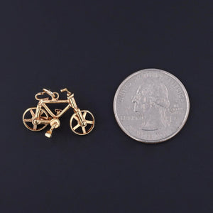 A delightful mechanical jewel from the mid-20th century, this vintage charm (circa 1950) is crafted in warm 10k gold and designed as a finely detailed bicycle. True to its whimsical charm, the wheels, pedals, and handlebars all move freely—an ingenious touch of craftsmanship from an era when charm bracelets told stories in miniature.