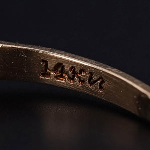 The mounting is crafted in 14k gold, offering both warmth and durability. The ring is currently a size 5.25 and is in great condition. Resizing is available upon request for an additional charge, ensuring the perfect fit.