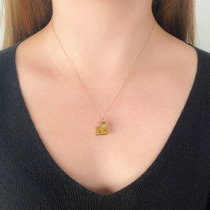 Celebrate love and devotion with this charming mid-century keepsake (circa 1950-1960) crafted in 9ct gold. Designed as a miniature church, the charm opens to reveal a beautifully detailed interior scene — a couple standing before a priest or pastor, poised to exchange their vows.