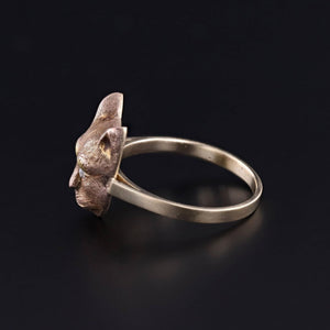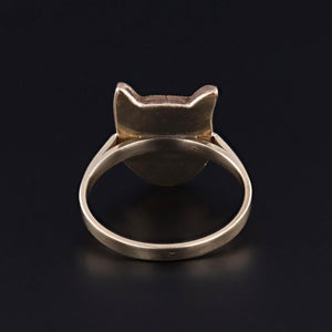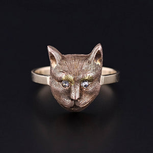 Whimsical yet regal, this antique cat ring features a finely detailed feline head with glowing rose cut diamond eyes, capturing the mystery and charm of one of history’s most beloved creatures. Originally crafted as a Victorian stickpin (circa 1890), the piece has been thoughtfully converted by our jeweler, who removed the pin stem and added a custom 14k gold band to transform it into a striking and wearable ring.