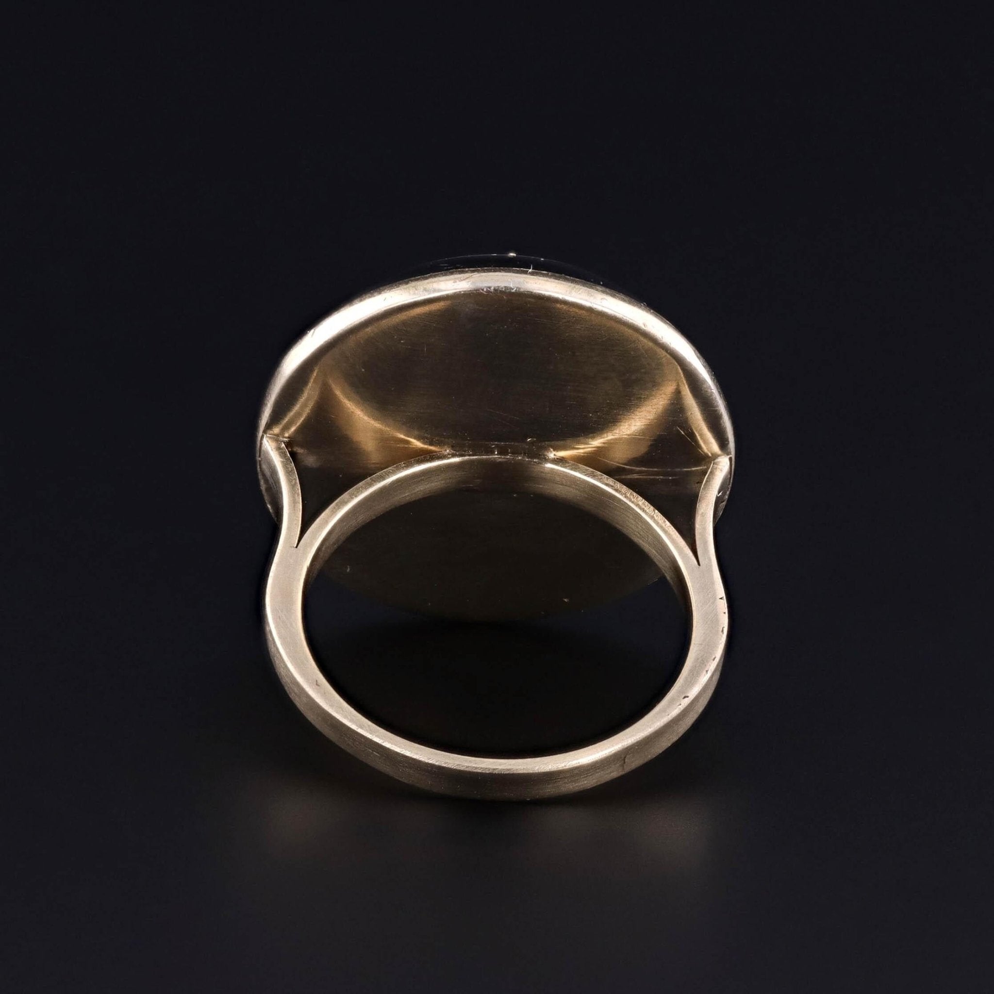 The face of the ring measures 0.8 inches in diameter and rises approximately 0.4 inches above the finger, creating a bold yet balanced silhouette. It is currently a size 6 and can be resized for an additional charge. The gold has been verified using both XRF analysis and traditional jeweler’s acid testing, ensuring its authenticity and quality.