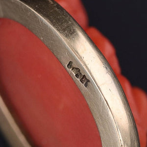 The warm, natural hue of the coral contrasts beautifully with the soft glow of the old gold mounting, creating a timeless and heartfelt piece of antique jewelry.