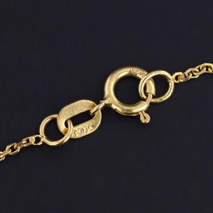 Measuring approximately 2.2 inches high by 1.2 inches wide, the piece bears the maker’s mark “347AL”, attesting to its authenticity and distinguished provenance. It is accompanied by a 16-inch, 14k gold chain, offering versatility and ease of wear.