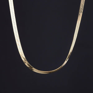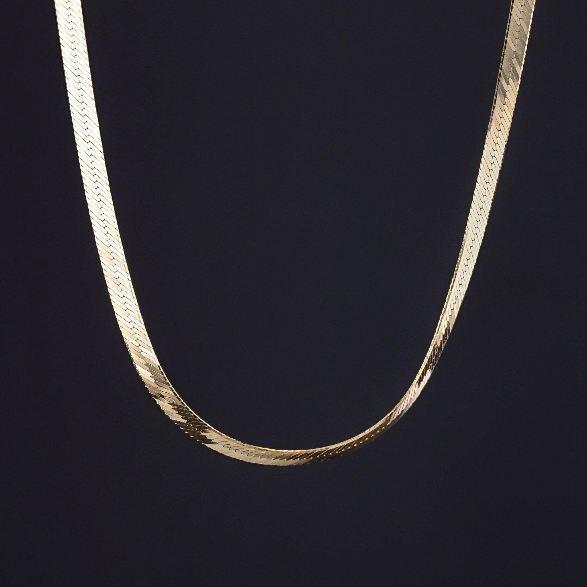 This vintage necklace (circa 1980-1990) features a chain of 14k gold herringbone links.