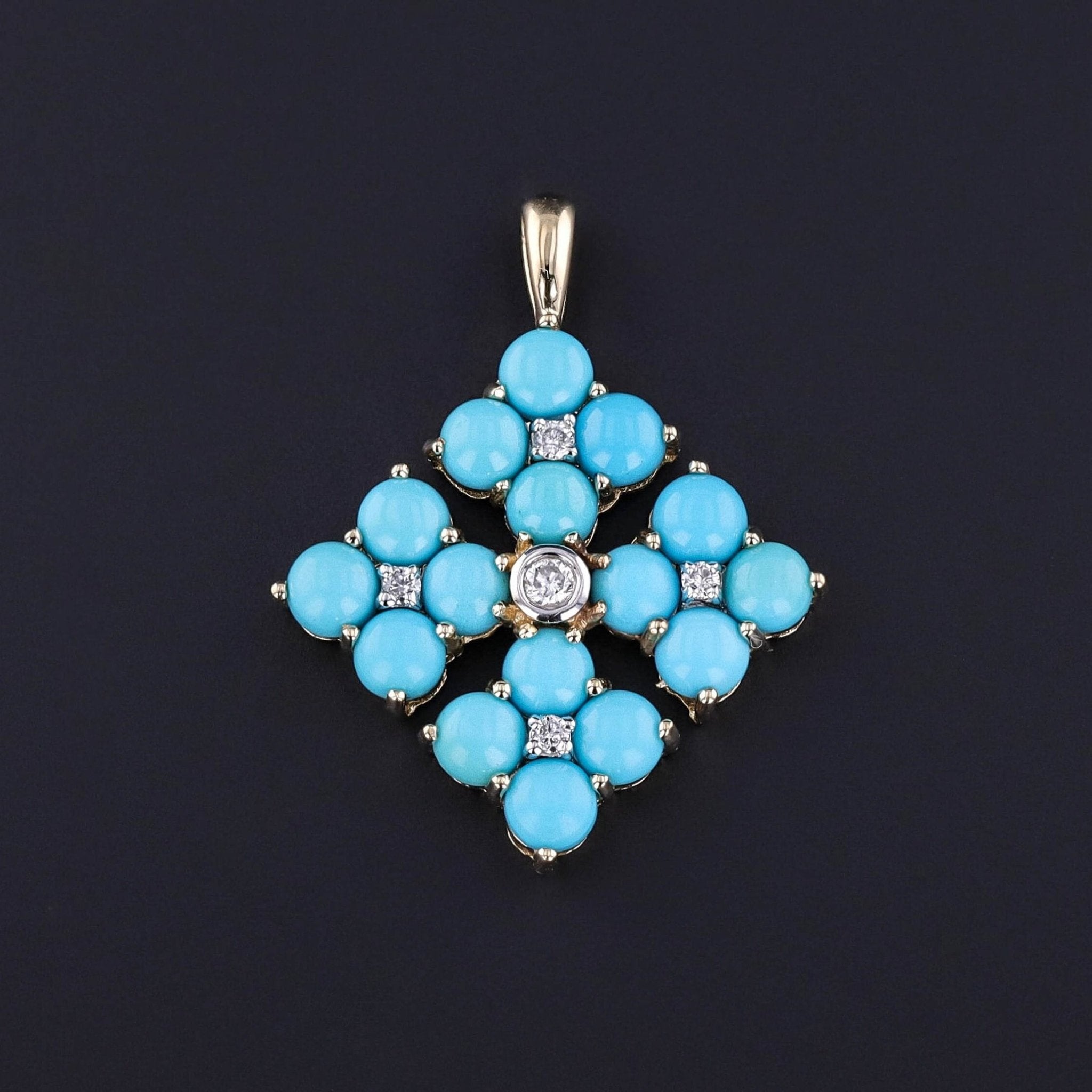 This 1980s-era pendant is a perfect example of the period’s love of vibrant color and luxurious design. Whether you're a collector of vintage turquoise jewelry, a lover of bold gemstone pieces, or simply searching for a unique pendant to elevate your look, this turquoise and diamond treasure adds just the right touch of vintage glamour to any collection.