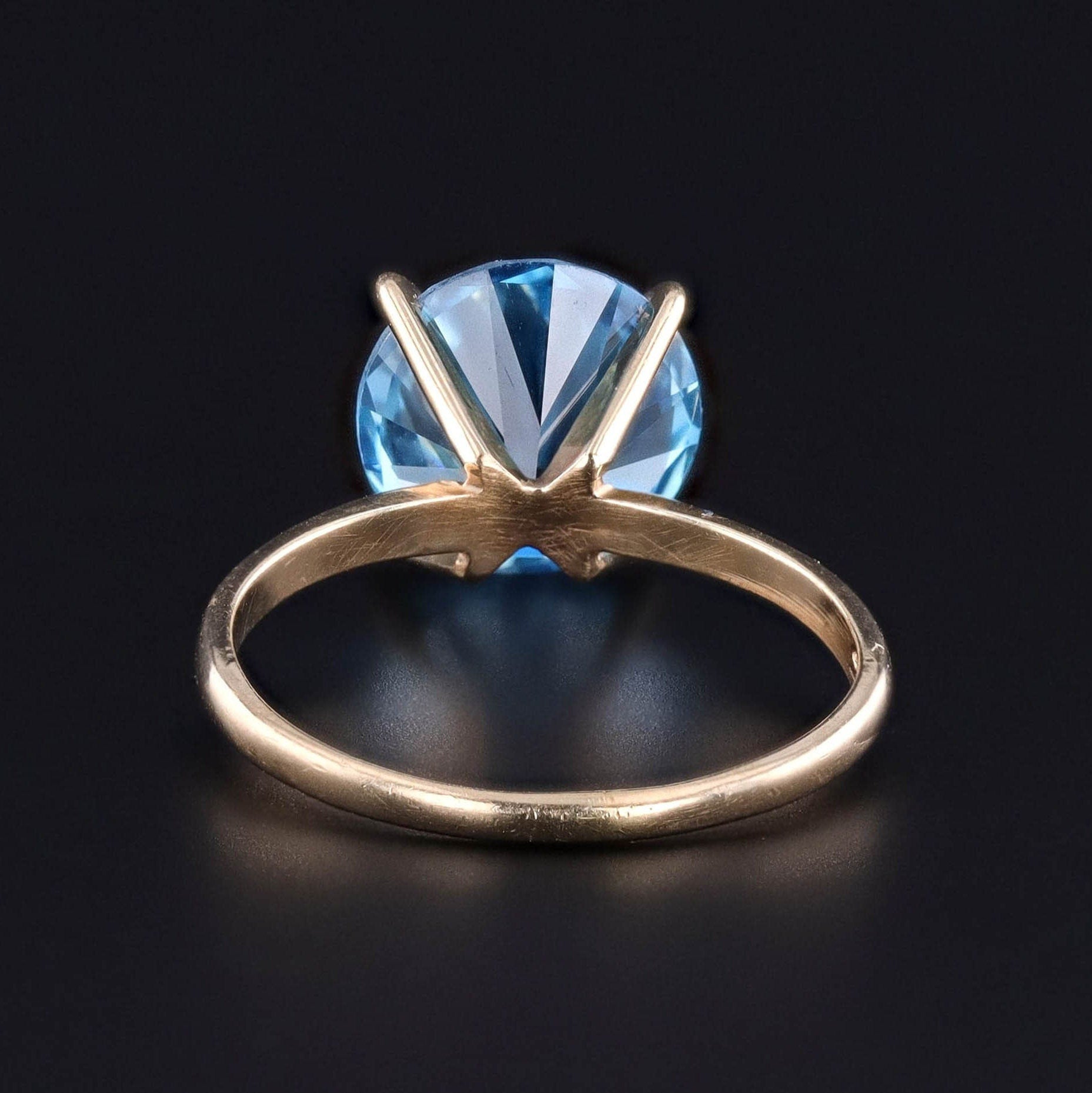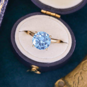 This bold and eye-catching vintage ring, crafted circa 1980–1990, features a vibrant lab-created blue cubic zirconia set in a sleek 14k gold setting. The dazzling blue stone evokes the brilliance of a sapphire, offering rich color and sparkle at an accessible price point, perfect for lovers of retro-inspired glamour.