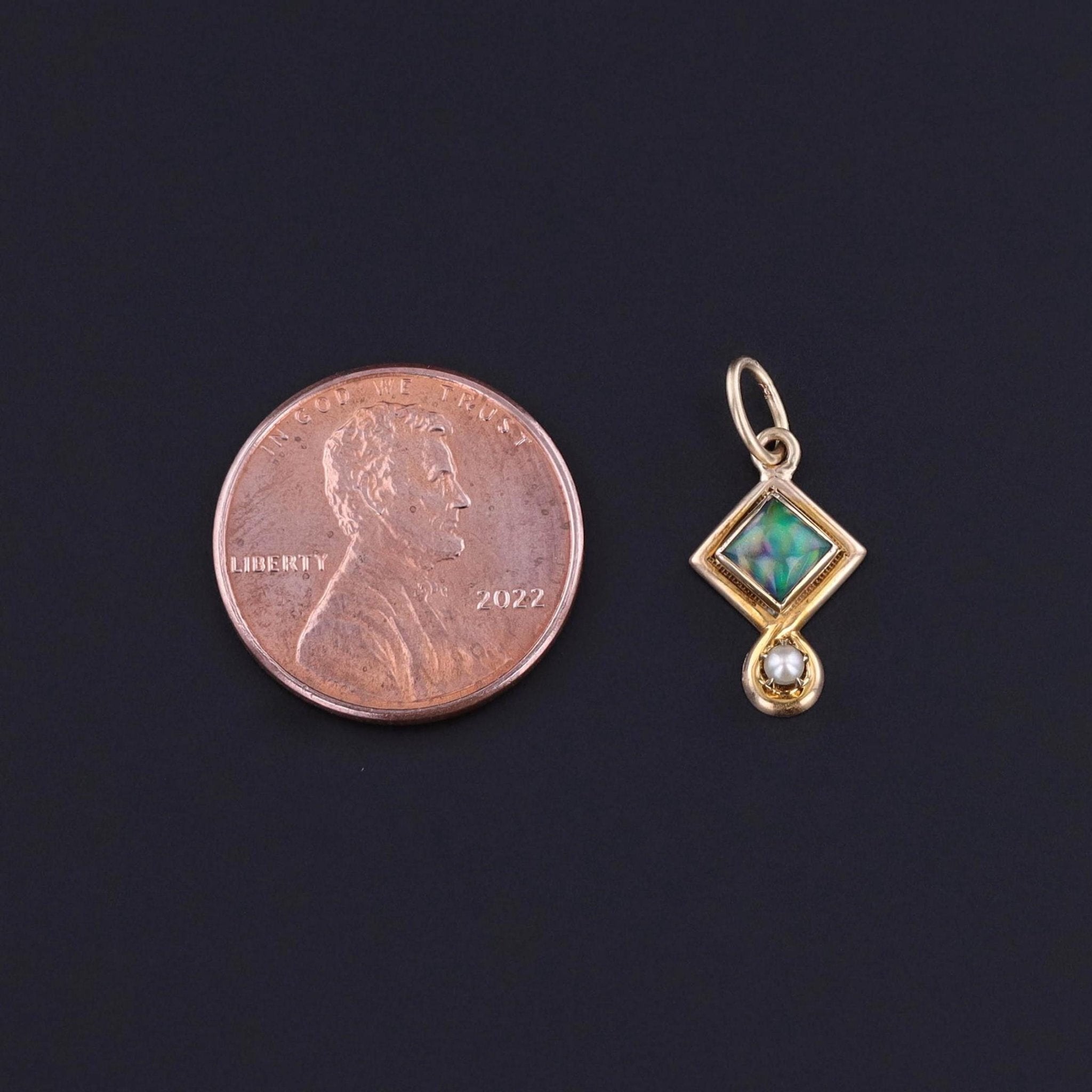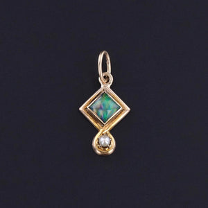 Antique Black Opal Charm: This Art Nouveau era charm features a black opal set in 14k gold with a single pearl accent. It was originally an antique stickpin (circa 1915) that our jeweler transformed by removing the pin and adding a jump ring bail.