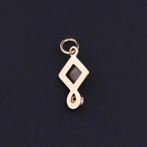 The piece measures 0.8 inches from the top of the jump ring to bottom by 0.3 inches wide and weighs 0.70 grams. It is in great condition.