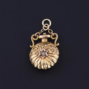 This antique, 10k gold charm (circa 1890) is adorned with a turquoise studded star on one side and a pearl star on the other.