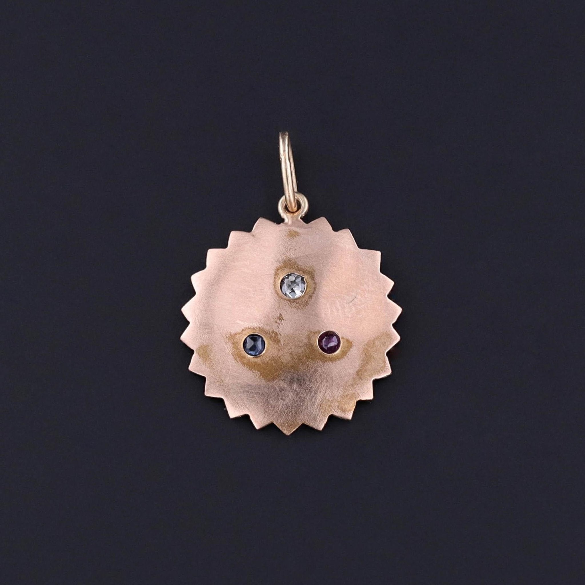 Antique Flower Charm: This antique charm (circa 1890-1900) features a flower accented with a ruby, diamond, and sapphire. The tri-color piece is also framed with rose gold and platinum accents.
