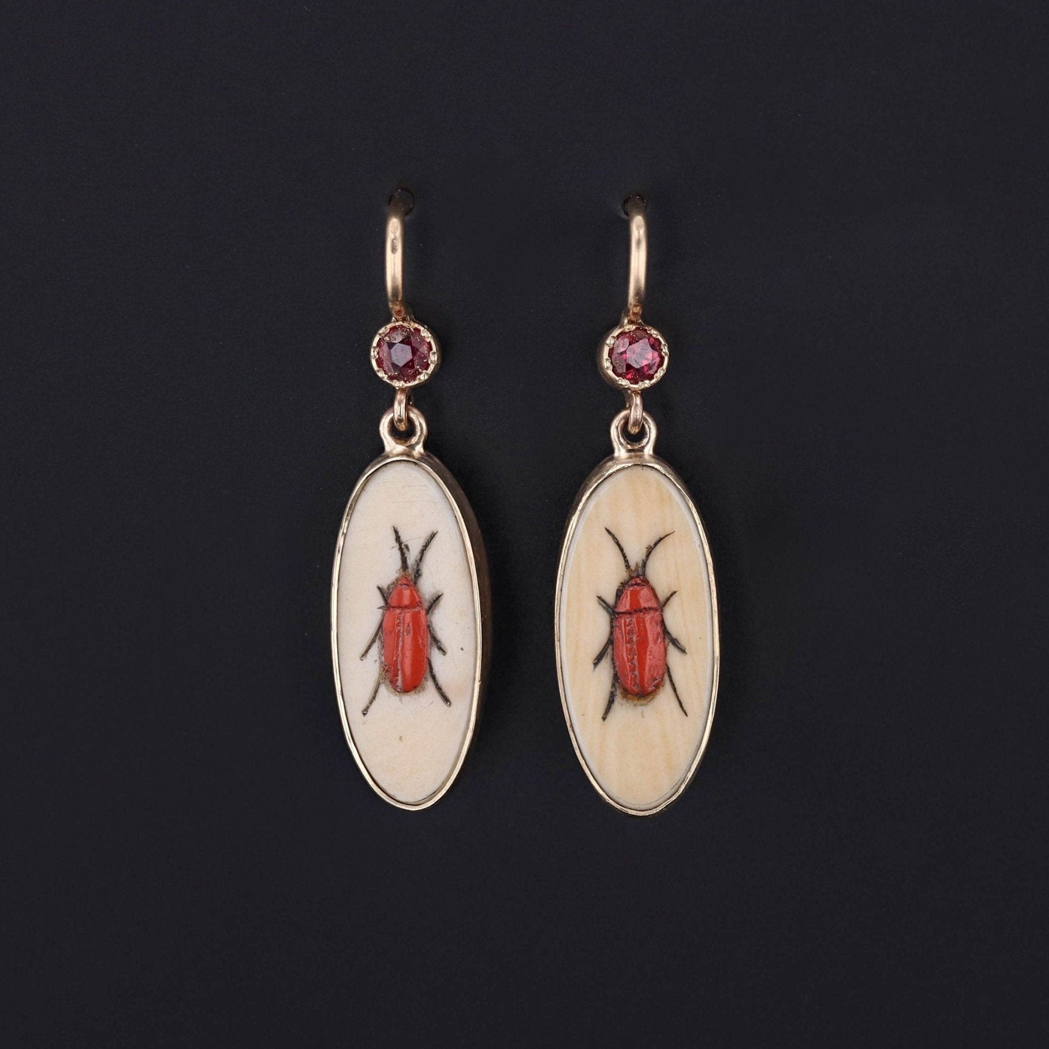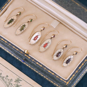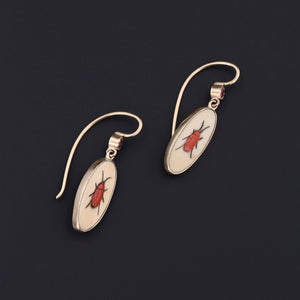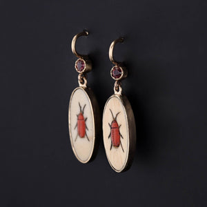 Shibayama Insect with Ruby Conversion Earrings in 14k Gold
