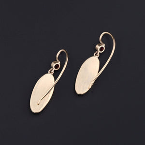 These distinctive earrings were created from antique Shibayama game pieces (circa 1880), a Japanese decorative art celebrated for its intricate inlay and naturalistic motifs. Our jeweler carefully cut the originals into refined oval forms, mounted them in 14k gold, and completed the design with ruby surmounts and 14k gold ear wires—blending 19th-century craftsmanship with modern wearability.