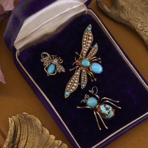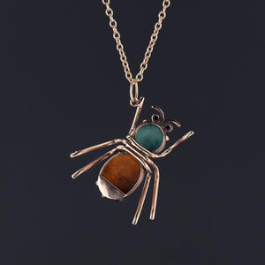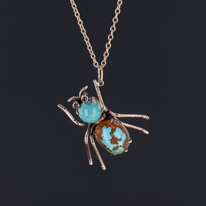 A whimsical jewel with personality and style, this turquoise and ruby insect pendant is perfect for collectors of figural jewelry or anyone who loves a touch of mid-century playfulness in their collection.