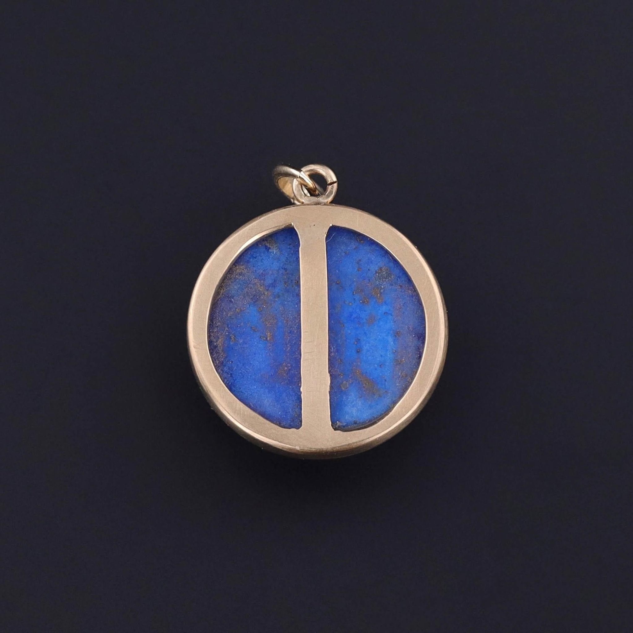 Celestial and bold, this pendant (circa 1980) was created from a vintage earring, thoughtfully reimagined by removing the post and adding a custom 18k gold bail. The design features a rich lapis lazuli hemisphere, its deep blue surface adorned with four gleaming 18k gold stars, evoking a night sky in miniature.