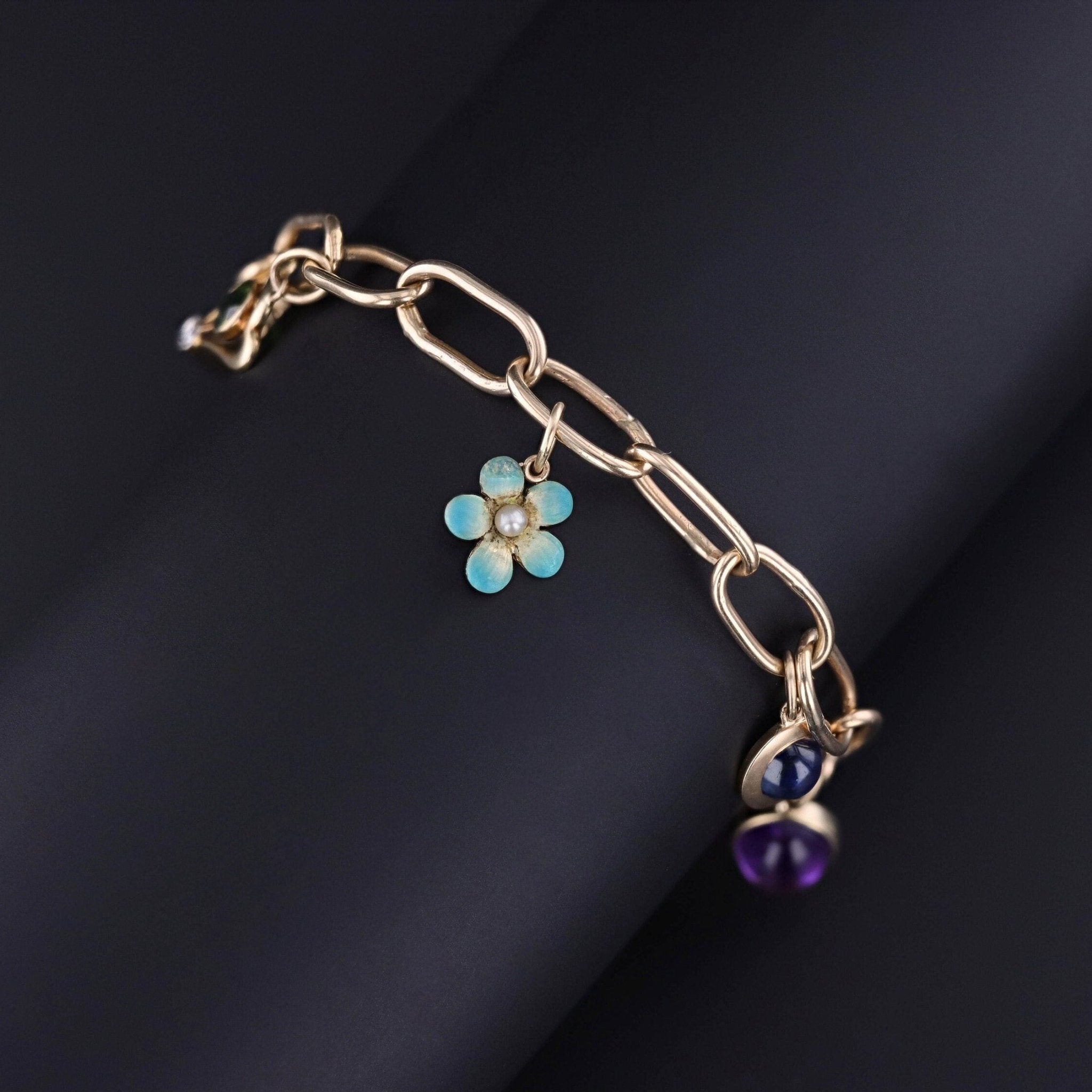 A jewel of charm and history, this bracelet is a wearable conversation piece — perfect for the collector who treasures antique details and loves jewels that tell a story.