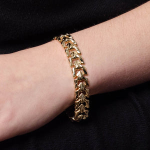 This vintage bracelet (circa 1980-1990) features links of 14k gold.