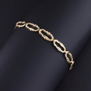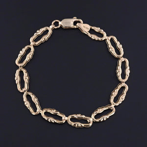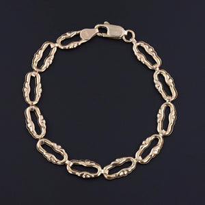 This vintage bracelet (circa 1960-1970) features scalloped oval links of 14k gold.