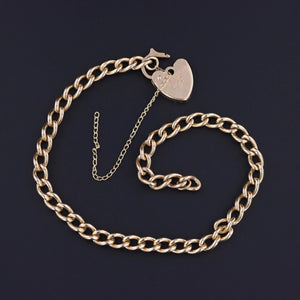 This vintage bracelet (circa 1920-1930) features links of 9ct gold with a 9ct heart padlock.
