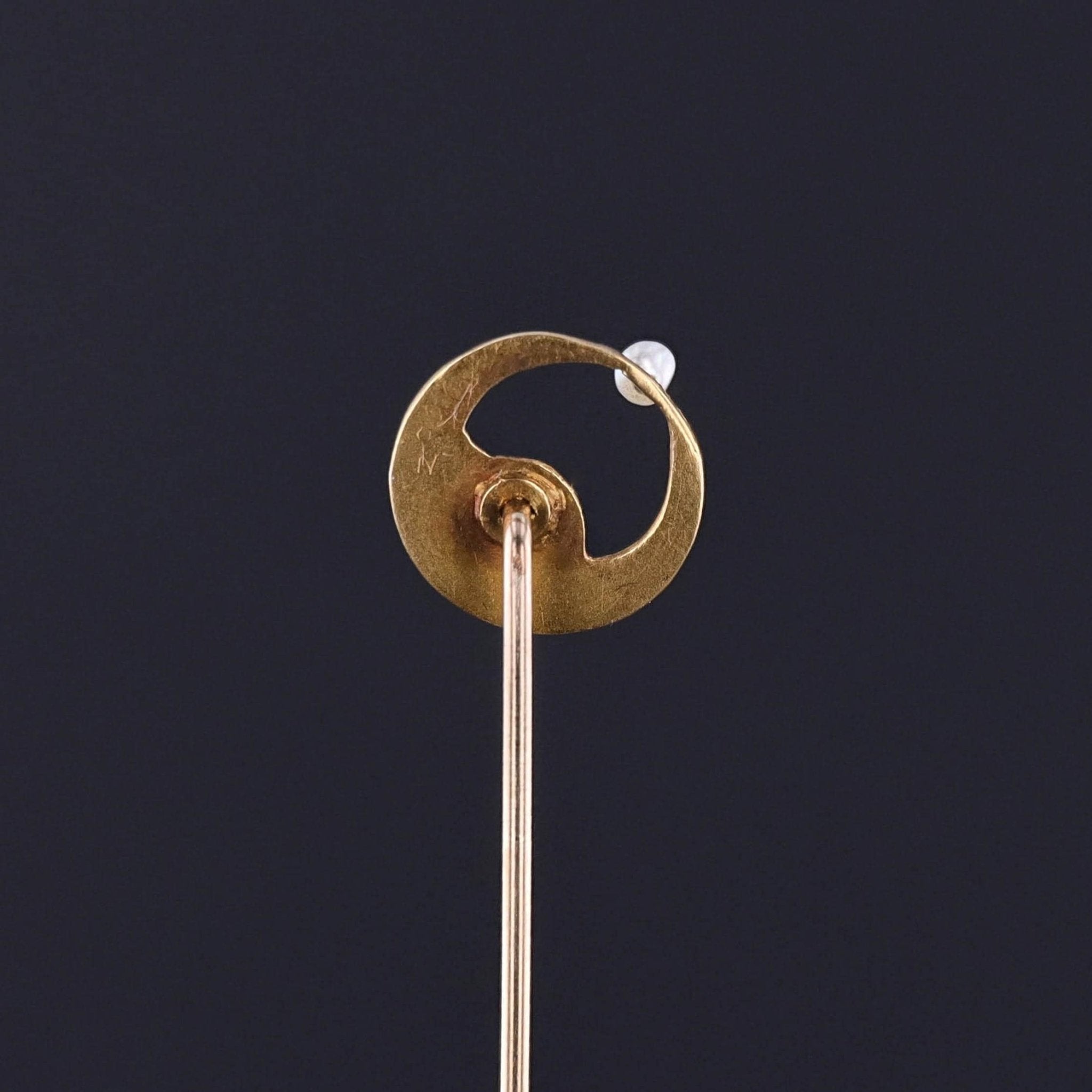 Antique Stickpin: This antique 10k gold stickpin (circa 1910) features a woman in the moon motif adorned with a single pearl "star."