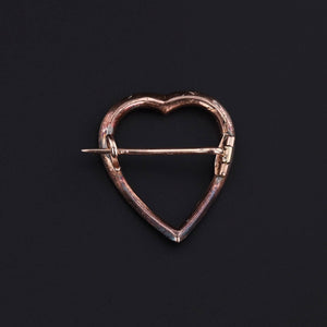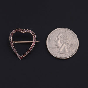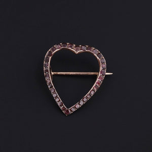 A rare jewel from the Georgian era (circa 1780–1800), this romantic heart-shaped brooch is crafted in warm 14k gold and adorned with richly hued flat cut garnets. Each stone is foil-backed in the period tradition, creating a captivating depth and play of light that speaks to the meticulous craftsmanship of the 18th century.