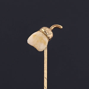This antique 14k gold stickpin (circa 1870-1880) features a child's milk tooth capped with an acorn top.