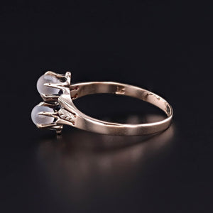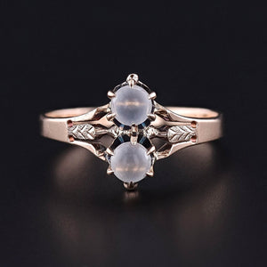 Antique Moonstone Ball Ring: An alluring moonstone ring (circa 1900) featuring two undrilled moonstone beads set in pale 10k rose gold.