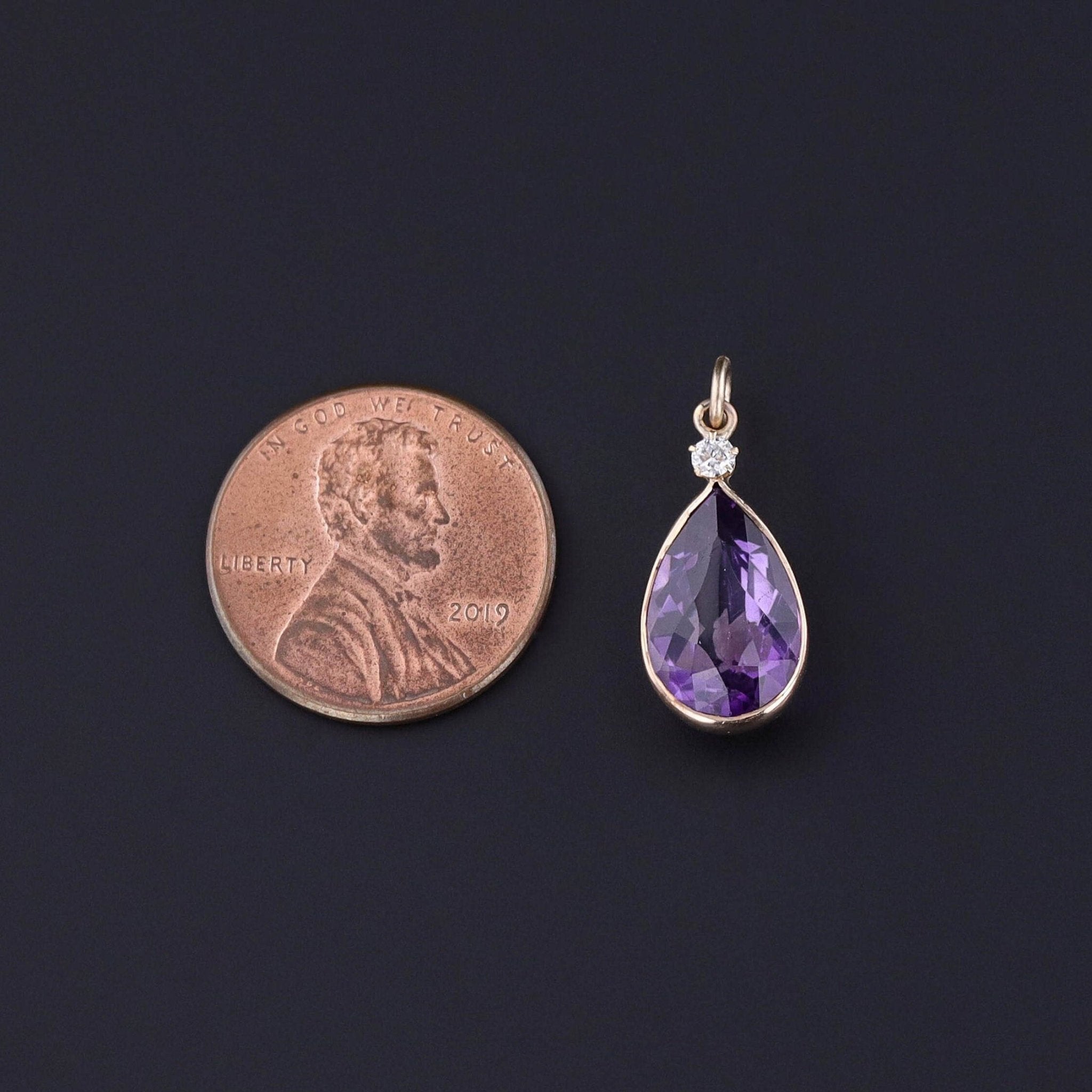 This elegant amethyst and diamond charm was created from an antique stick pin (circa 1910-1920). The charm is unmarked, but acid tests for 14k gold.