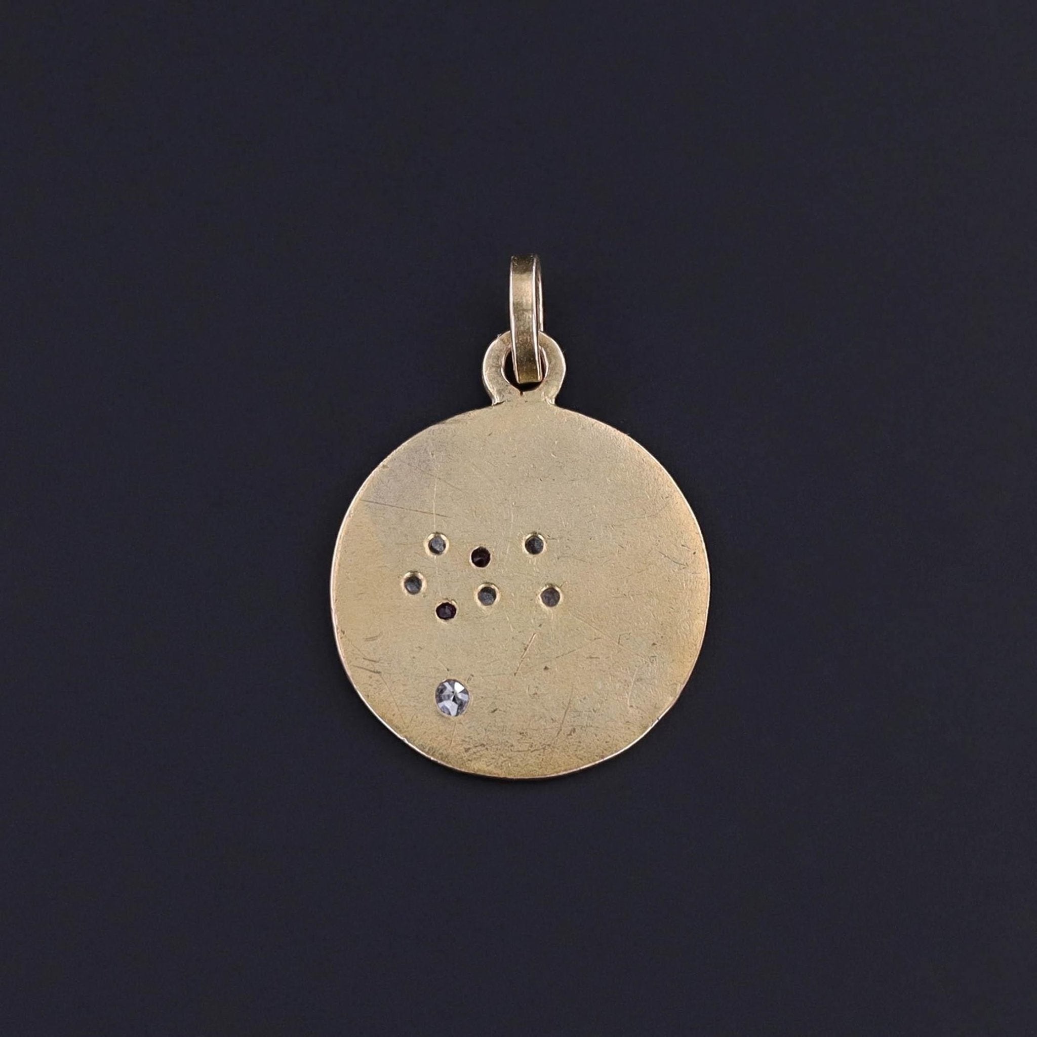 Antique French Love Token: This antique, 14k gold love token (circa 1910) features the French phrase 'Tient Ta Mon' which translates to 'Hold on my heart.' The pendant features a diamond and ruby studded flower and tiny diamond heart.