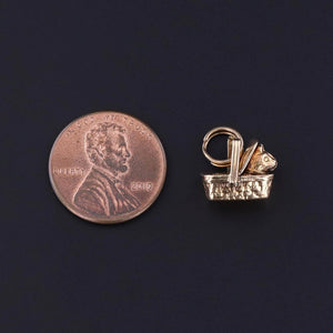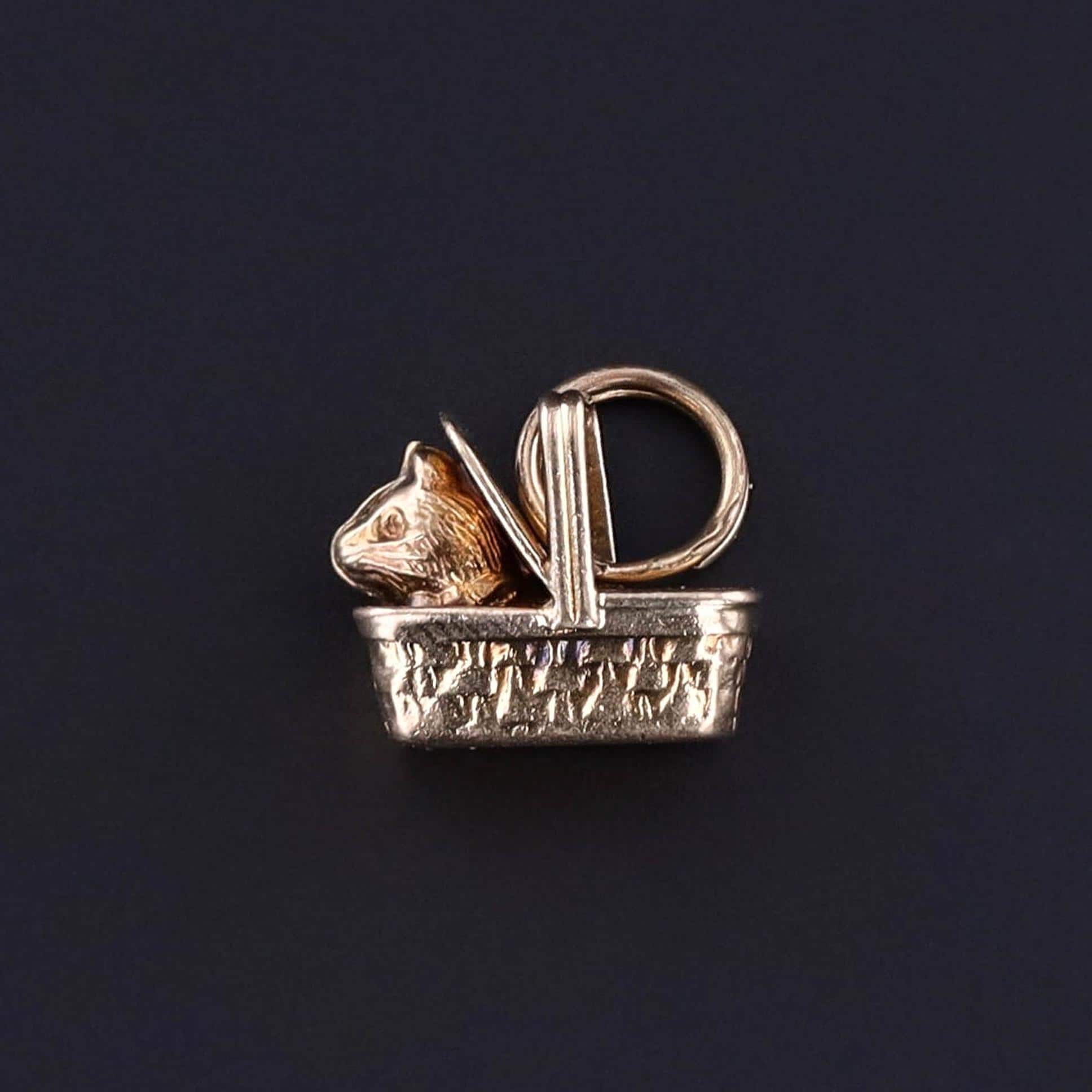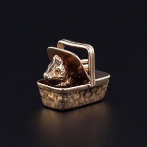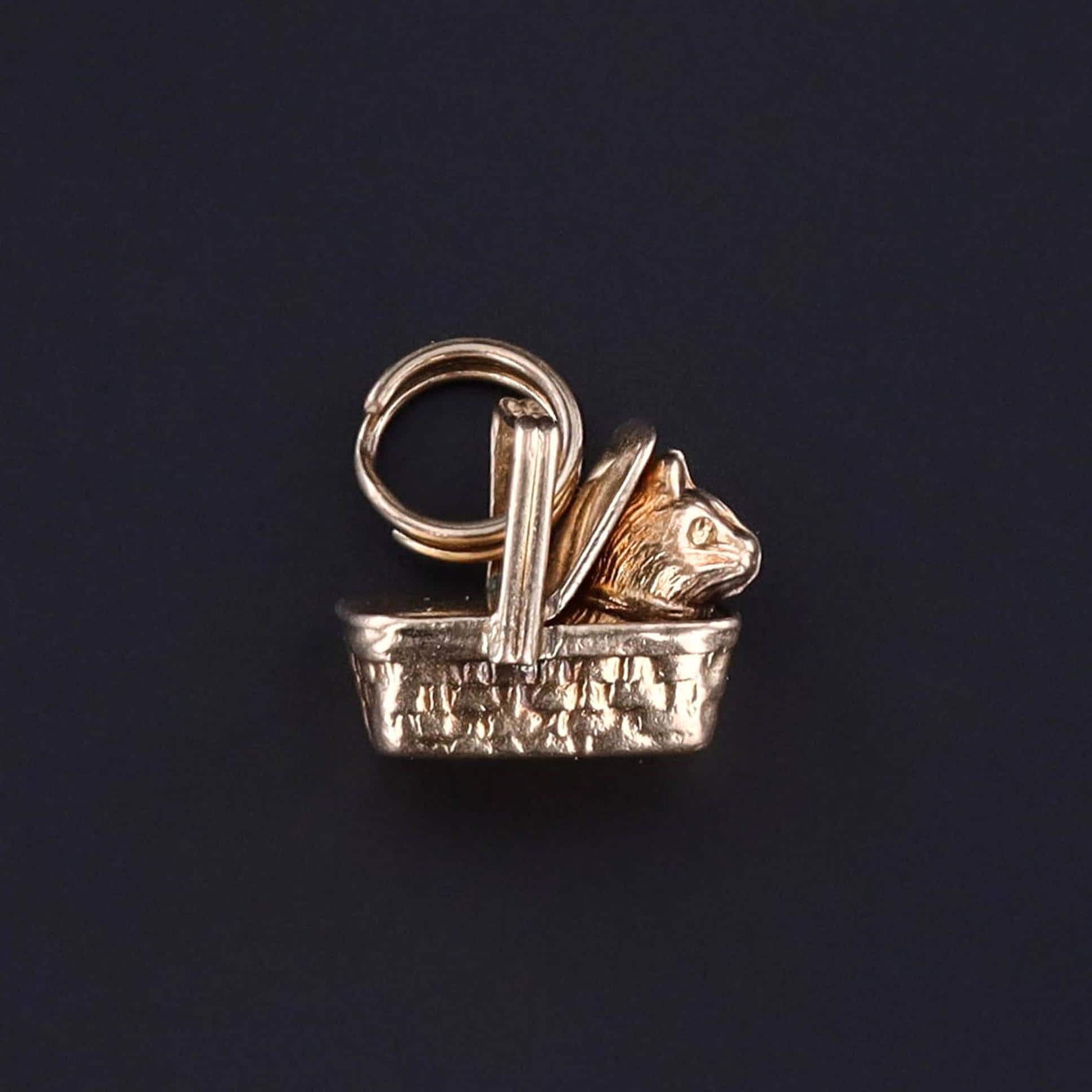 Vintage Cat Charm: This vintage 14k gold charm dates to the 1930s and features a cat, tucked away inside of a picnic basket.