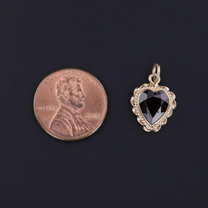 This vintage charm (circa 1960-1970) features a faceted garnet heart set in a twisted wire frame of 14k gold.
