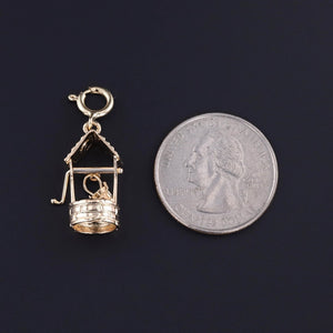 This vintage charm (circa 1960-1970) features a wishing well of 14k gold with a spinning crank and a dangling bucket.