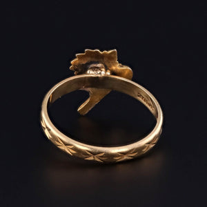 A delicate bloom with a story to tell—this distinctive ring marries two eras of craftsmanship. The floral centerpiece, crafted in warm 10k gold, began life as the head of an antique stickpin (circa 1910). Our jeweler thoughtfully transformed it by welding it onto a refined 18k gold vintage band (circa 1930), creating a seamless union of Edwardian charm and Art Deco elegance.