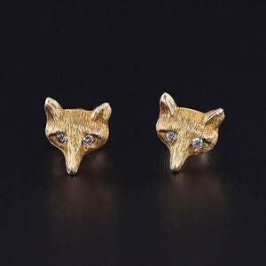 Antique Fox Earrings: These studs feature fox heads of 9ct gold with diamond eyes. They were created from antique shirt studs (circa 1910-1920).