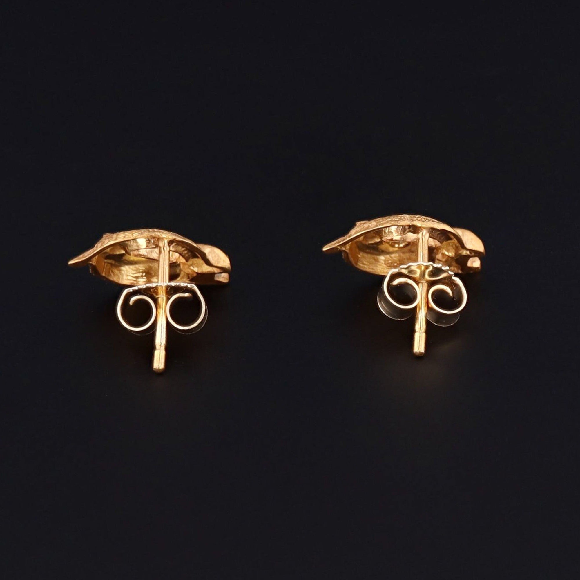 The earrings measure 0.4 inches wide by 0.3 inches high, and they are in very good condition.