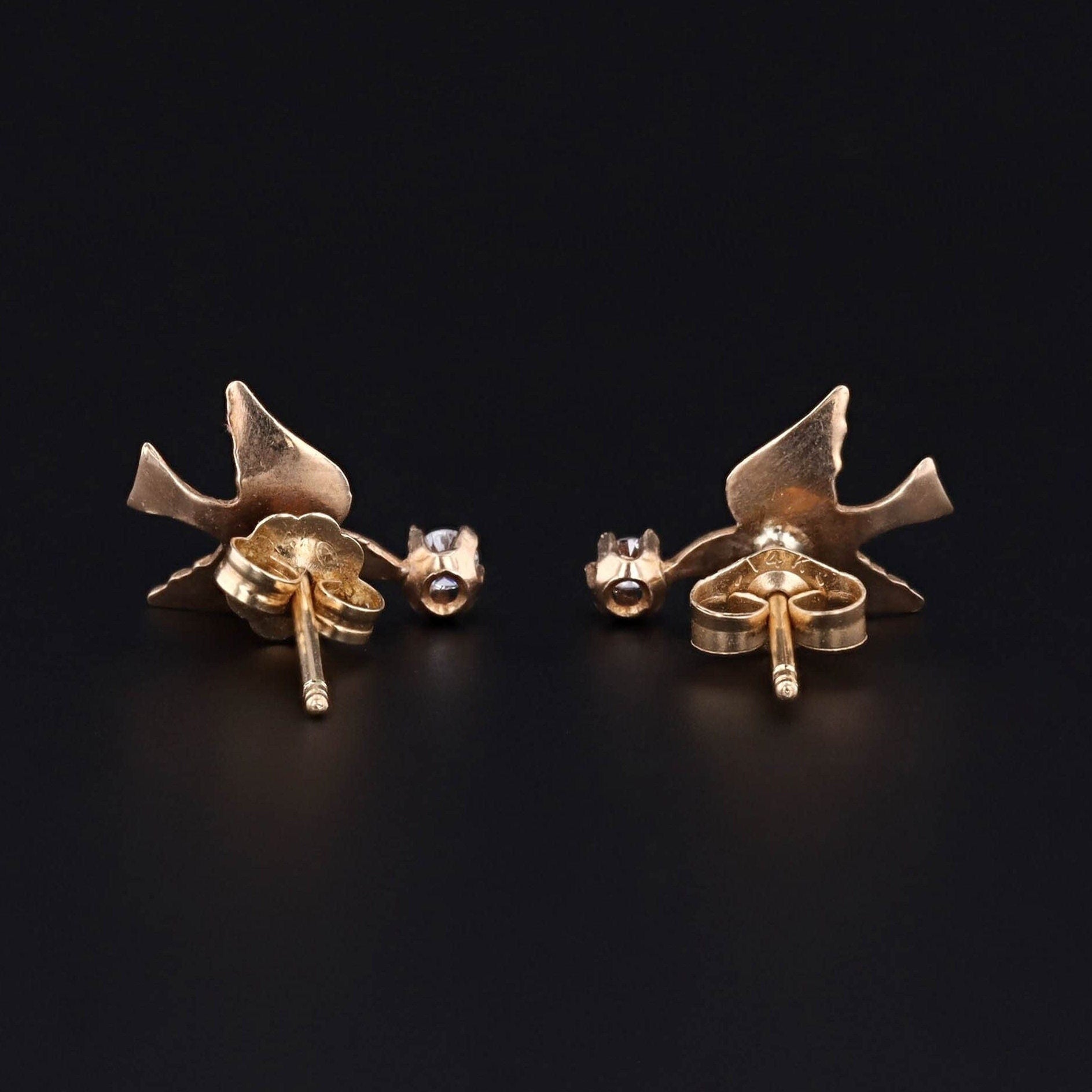 These antique earrings (circa 1910-1920) feature birds of 10k gold with two, diamond accents.