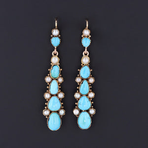 Dramatic antique turquoise and pearl dangles to liven up your lobes!