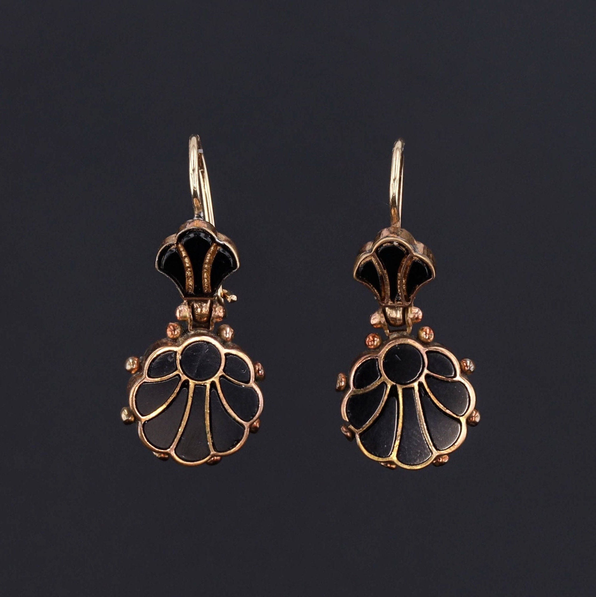 Whether you're getting thoughts of seashells on the beach, or perhaps the petals of the Black Dahlia, these onyx earrings add that touch of classic elegance!