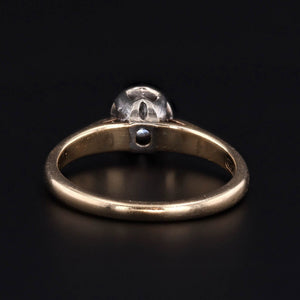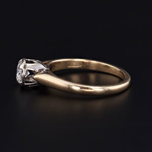 This wonderful ring (circa 1950-1975) features a 31 point (0.31 carat) round brilliant diamond of I color, VS2 clarity set in a 14k yellow gold mounting with 14k white gold prongs securing the diamond.